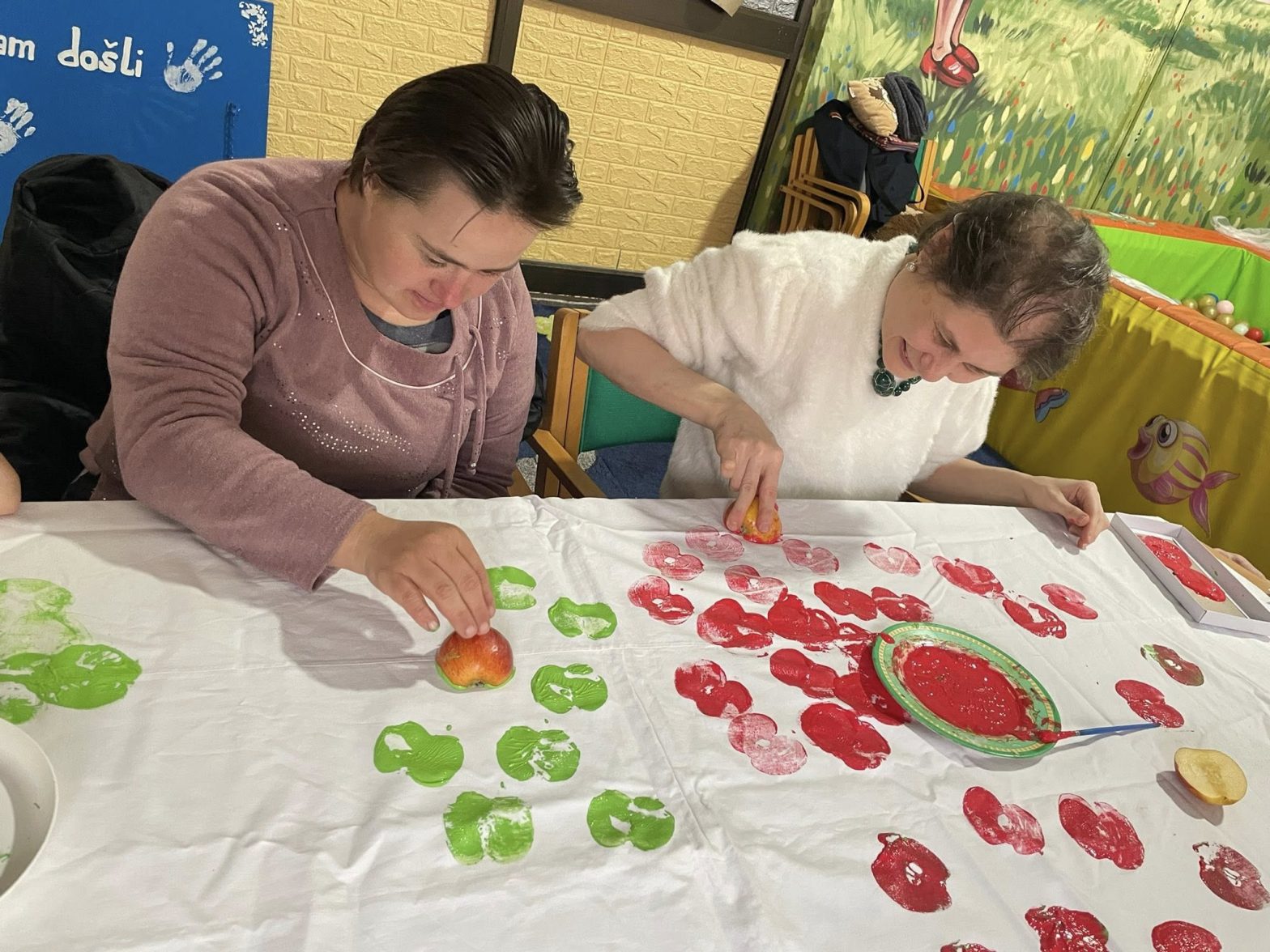 Obilježili smo Svjetski dan jabuka Povodom Svjetskog dana jabuka, spojili smo igru i umjetnost. Jabuke smo pretvorili u kistove i oslikali stolnjak šarenim otiscima. Aktivnost koja je probudila maštu i fine motoričke vještine.